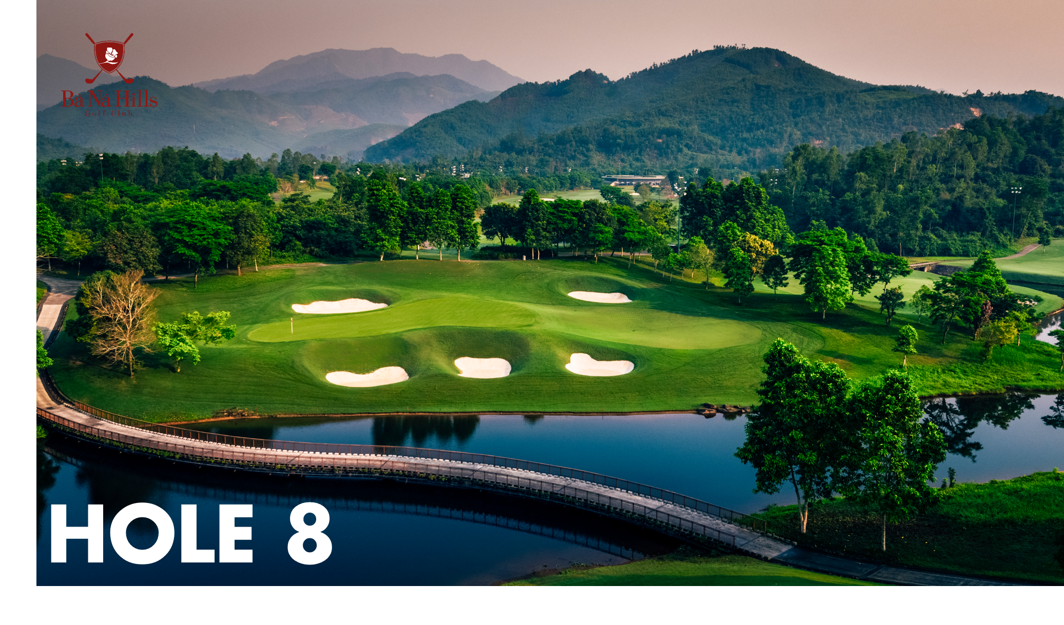The stunning 8th hole is set with a backdrop of Ba Na Hills and features a mixture of well-positioned bunkers, hazards and undulations. It is a beautiful and challenging par 3. Making sure you have enough club on this hole is the key to scoring well as you cannot be short due to the deep bunkers and sloping run-offs that surround the green. A par here is definitely a good score.