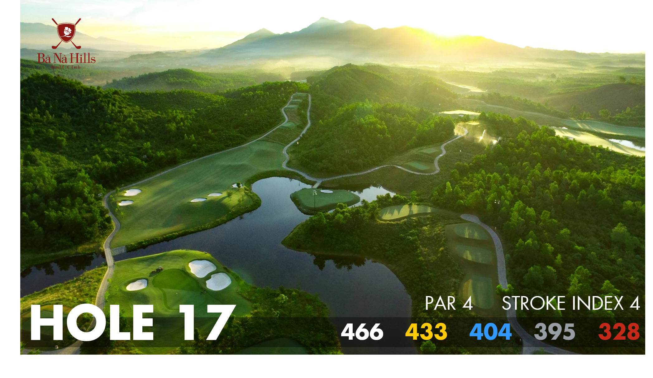 This hole is a pure delight to play and offers a great photo opportunity with its dramatic backdrop of the Ba Na Hills from the highest point of the course. The line off of the tee is just left of center of the fairway. However, if it leaks a little right that will still leave you in a good spot for your second shot. Hit your approach right of the hole to avoid the two large bunkers guarding short left of the green.